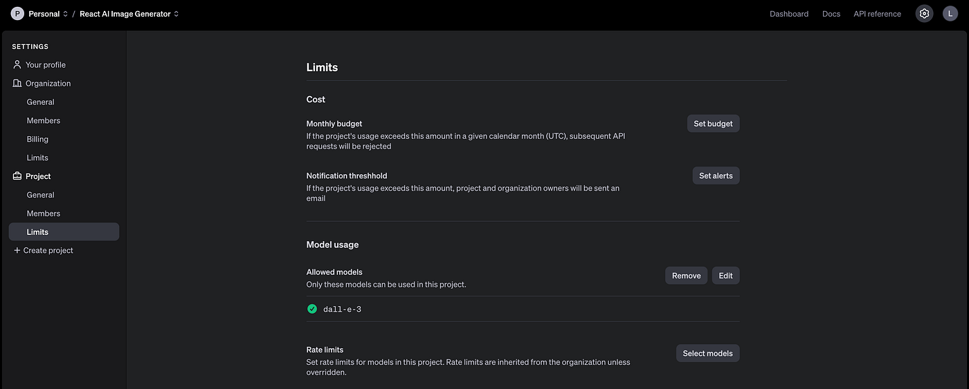Make sure you are in the correct project. You can see the project name on the navigation bar on top of the screen. In the picture below, it’s called React AI Image Generator.