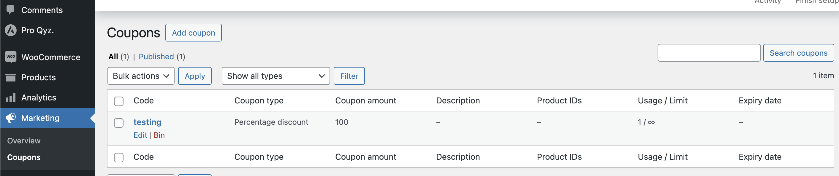 * Once all the details are filled out, click the **Publish** button to make the coupon active and available for use.
